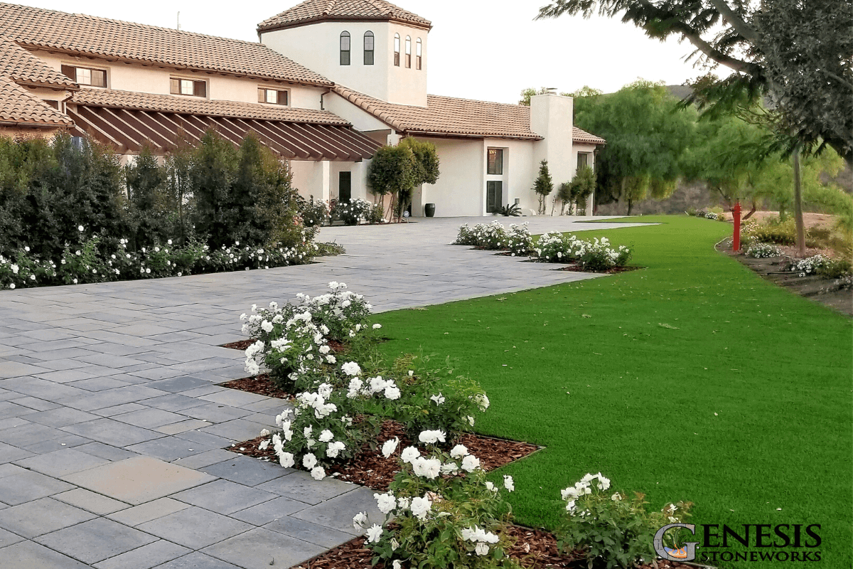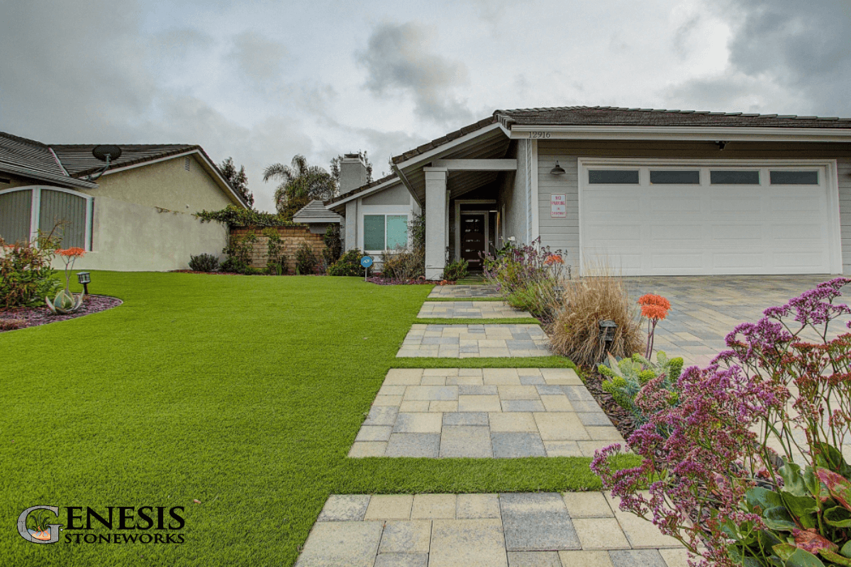 With today’s water restriction laws in California, it’s been a challenge to keep your home and surroundings looking green. With artificial turf, we can help your home stay beautiful all year long and for many years to come. We can install artificial turf anywhere from your front yard, back yard, patios, around your pool deck and walkways.